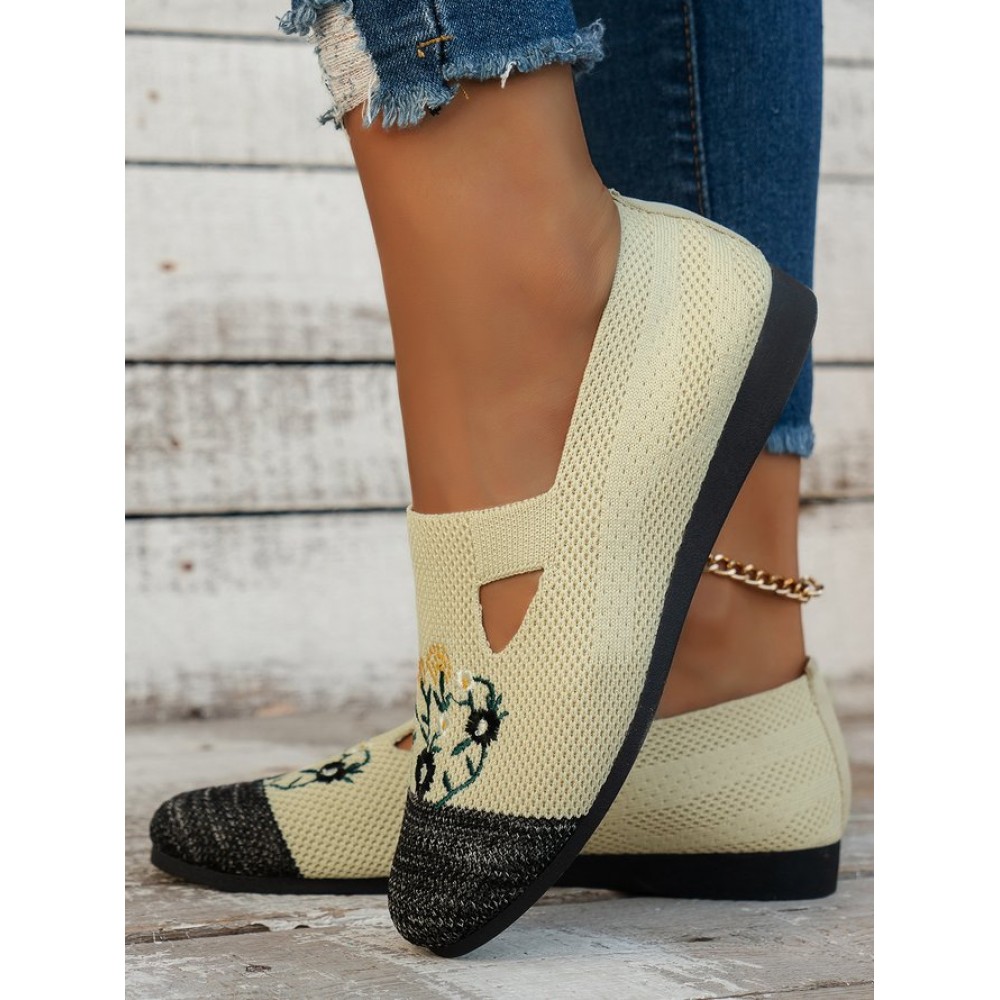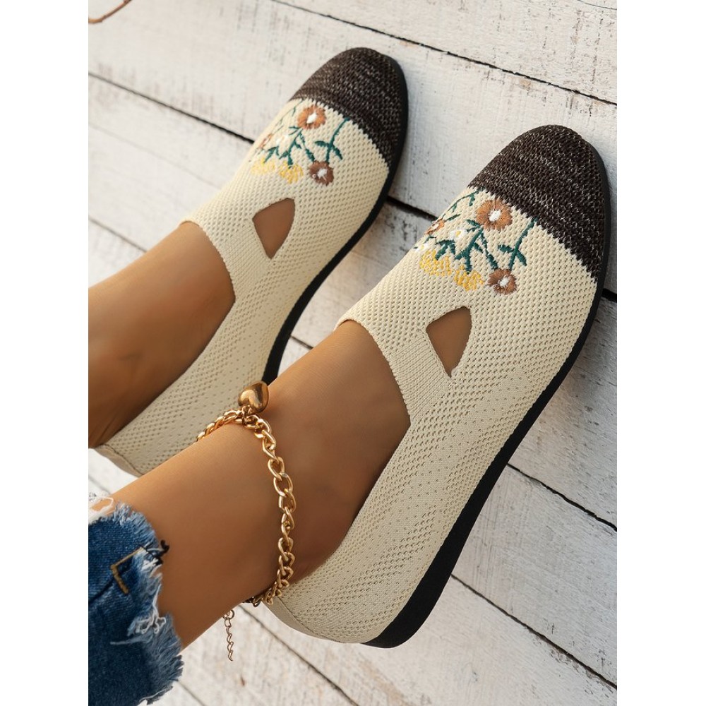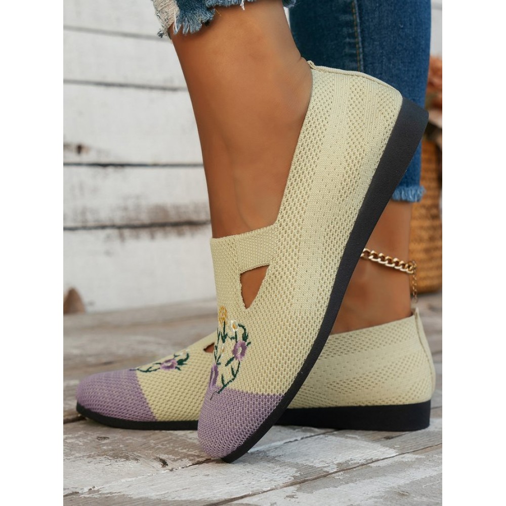 Casual Floral Breathable Slip On Flat Heel Deep Mouth Shoes Embroidery