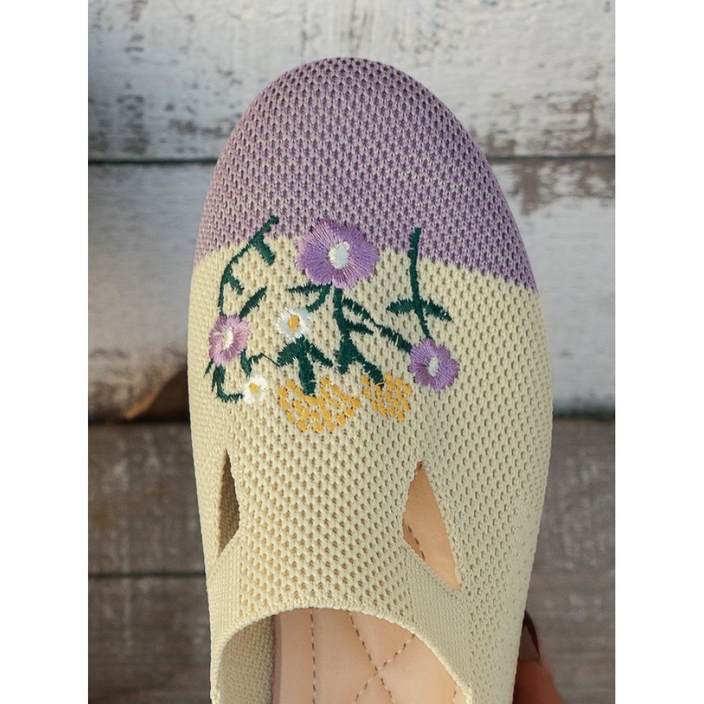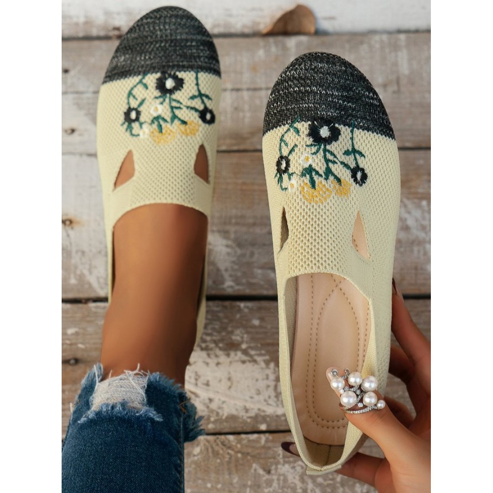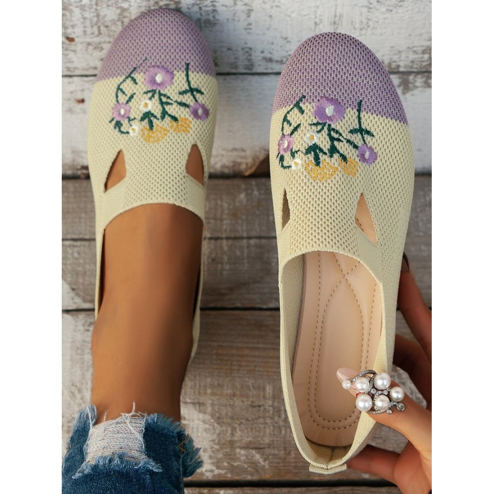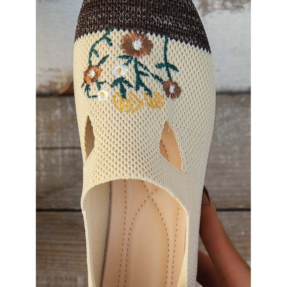 Casual Floral Breathable Slip On Flat Heel Deep Mouth Shoes Embroidery