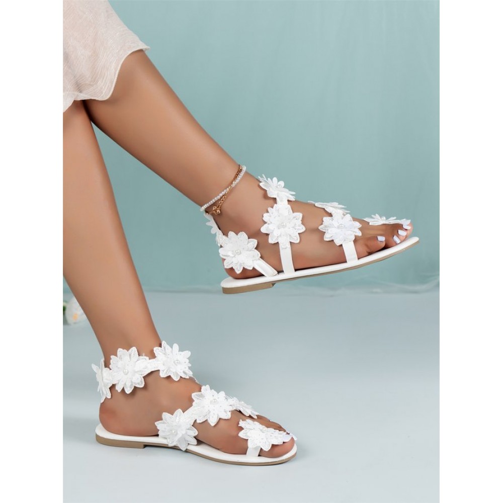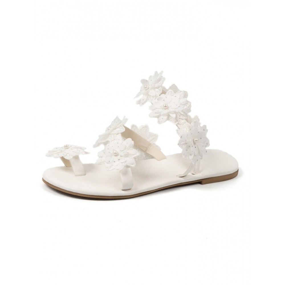 Elegant Floral Breathable Slip On Flat Heel Bridal Shoes Applique