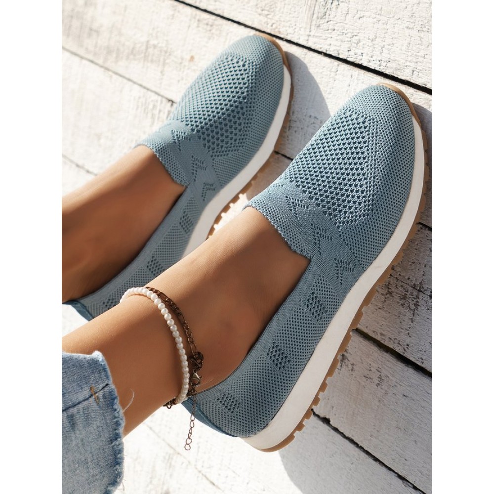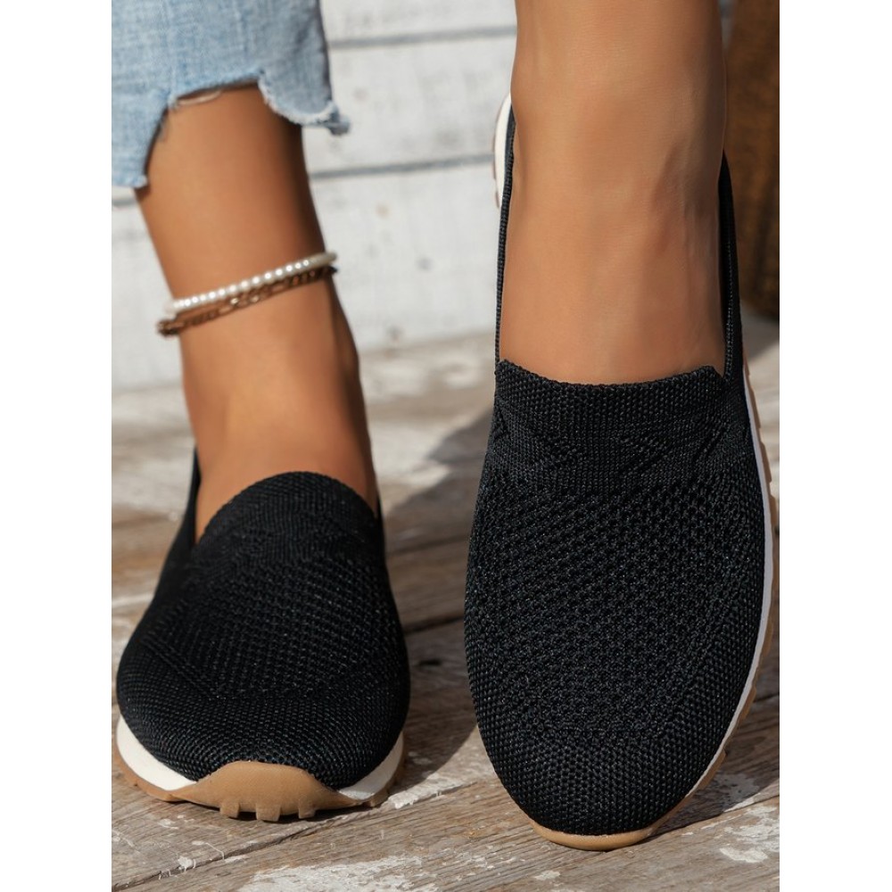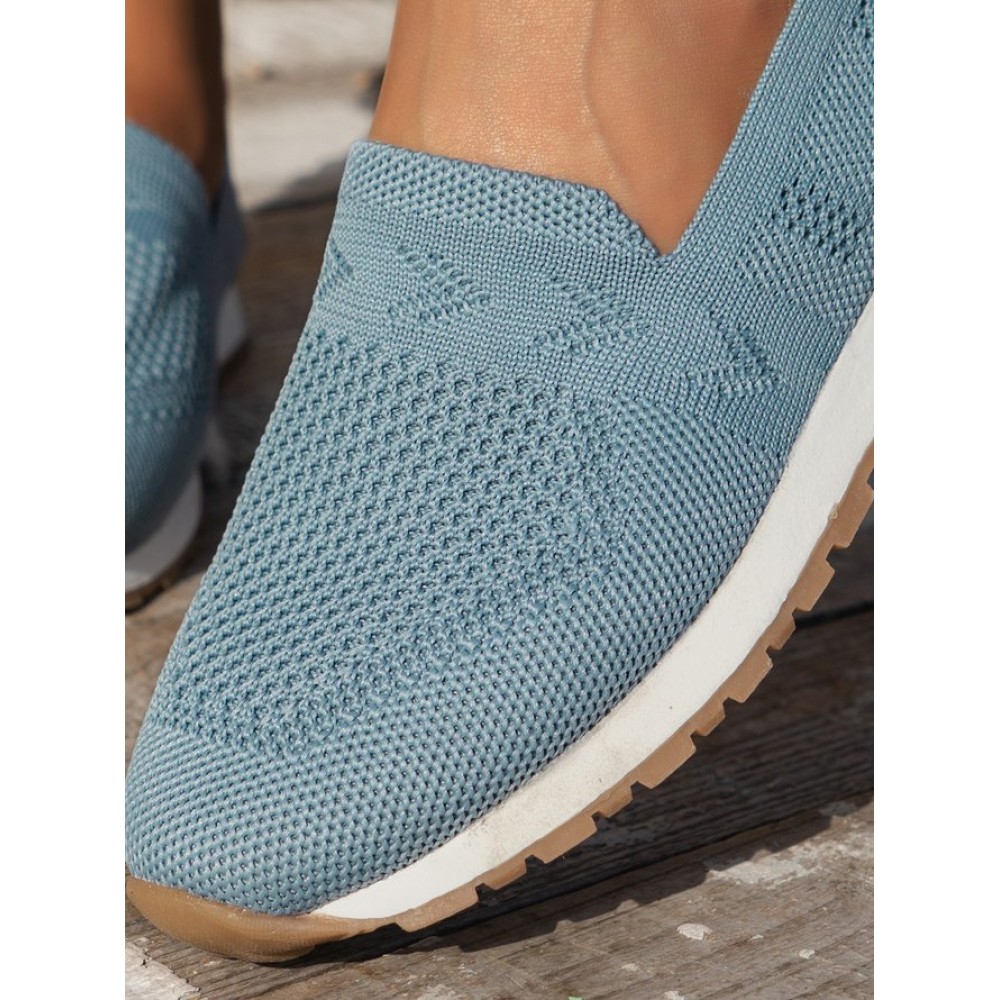 Sports Plain Breathable Slip On Flat Heel Fly Woven Shoes
