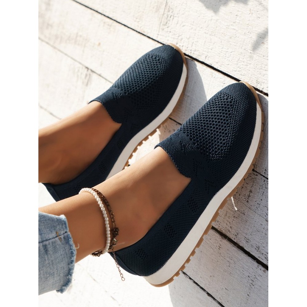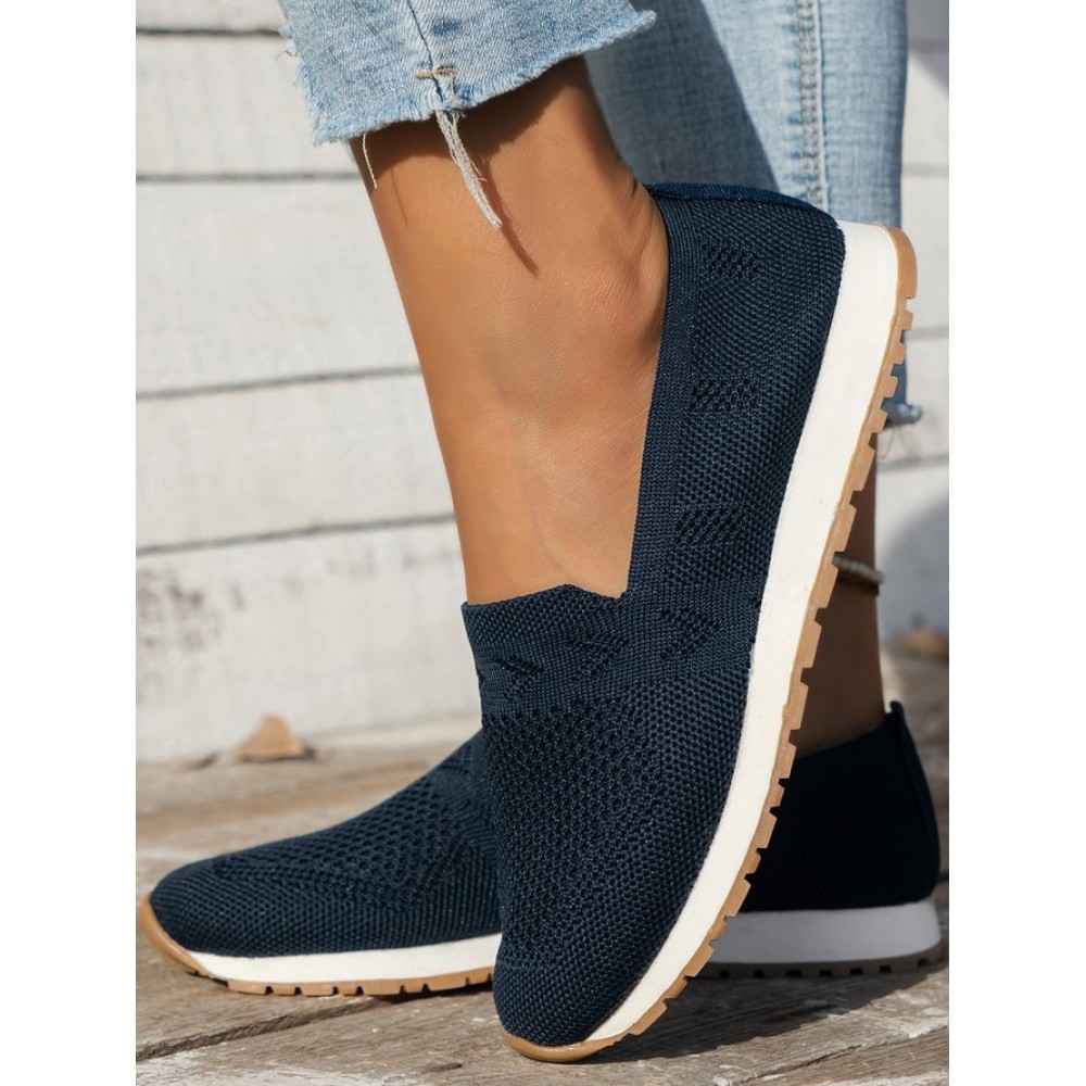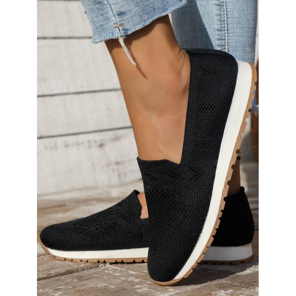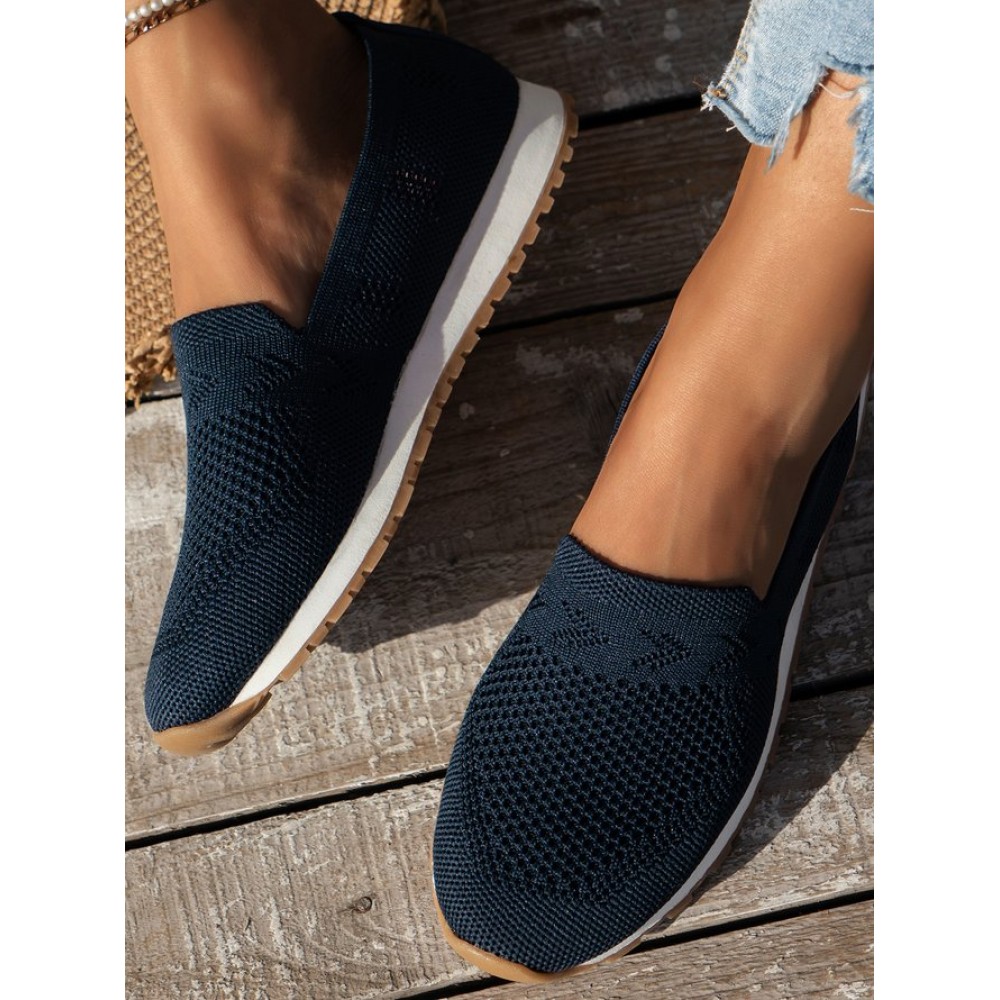 Sports Plain Breathable Slip On Flat Heel Fly Woven Shoes